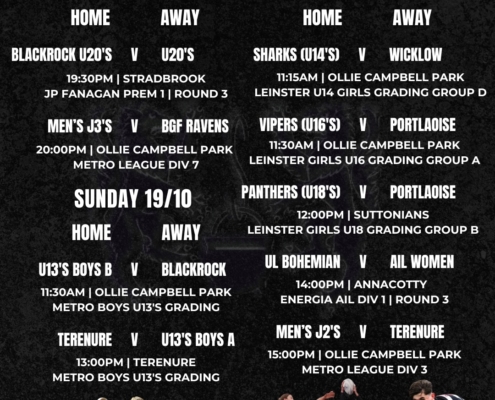 Upcoming Fixtures Weekend of 17th – 19th Oct 2025