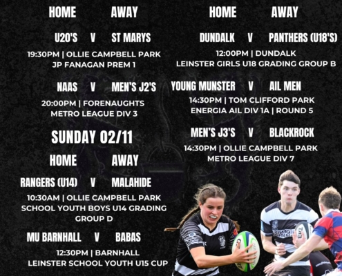 Upcoming Fixtures Weekend of 31st Oct – 2nd Nov 2025