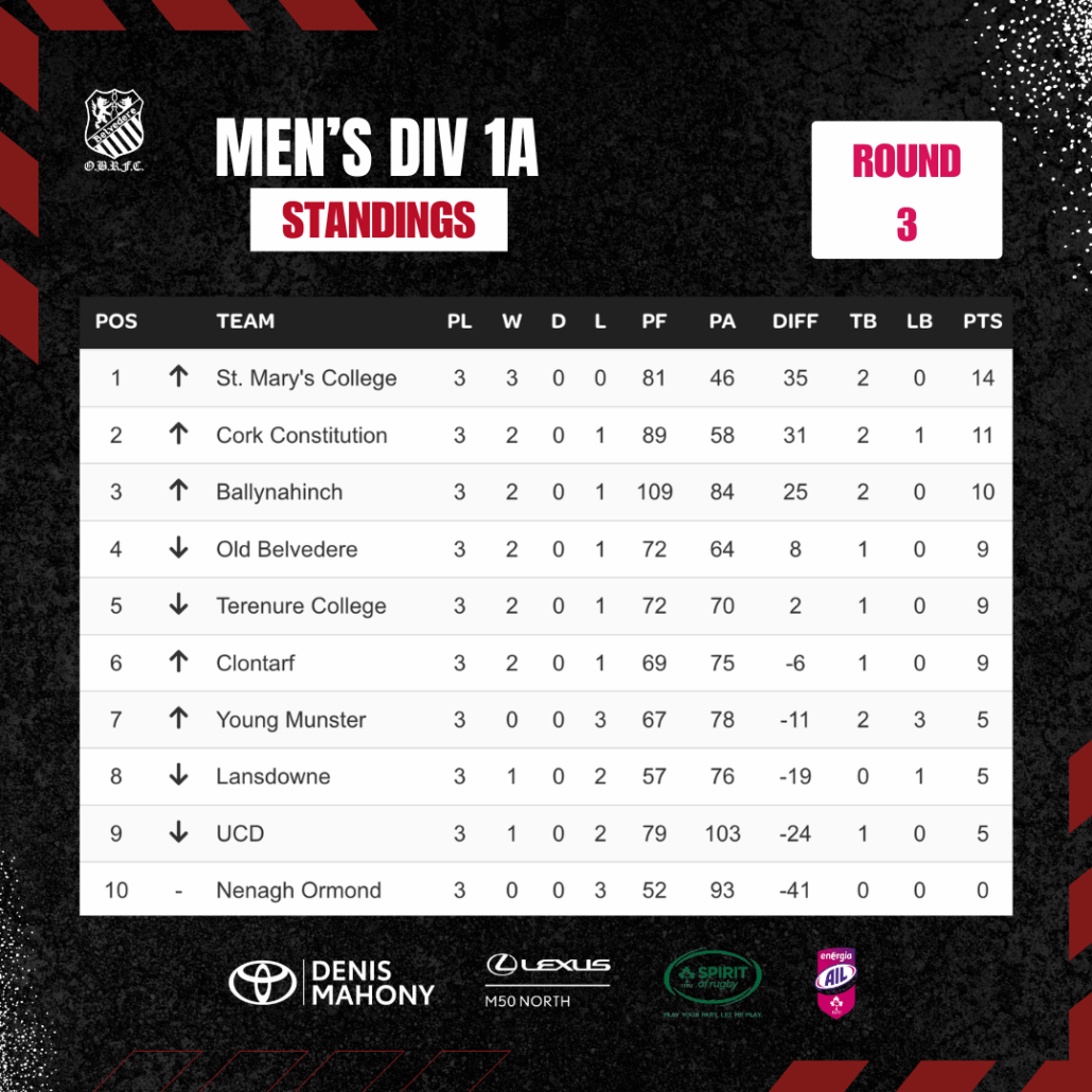 While our J2s fell just short in a close contest, there were plenty of positives to take from the strong team effort. It wasn’t the result our AIL Men were hoping for against St Mary’s, who move top of the table after Saturday’s clash, but plenty to build on as they turn their attention to next game which will be at home against Clontarf on Saturday, Oct 25th.
