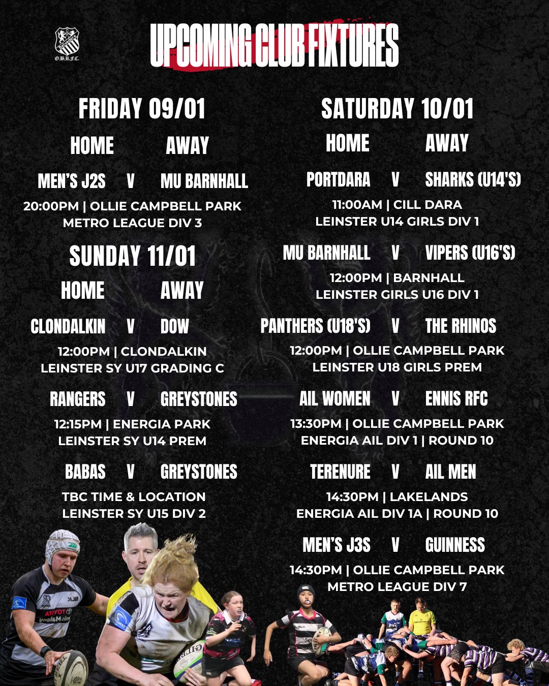 Upcoming Fixtures Weekend of 9th – 11th Jan 2026